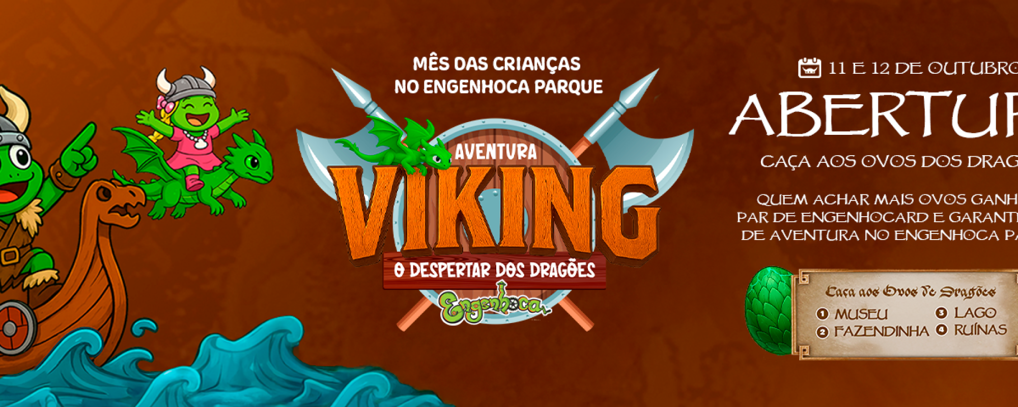 ⚔🐉 Aventura Viking – O Despertar dos Dragões chegou ao Engenhoca Parque trazendo muita magia, desafios e diversão para toda a família! 📅 Confira a programação completa: ✨ 11 e 12 de outubro – Abertura! O Despertar dos Dragões.⚔ Caça aos Ovos dos Dragões 🥚🐉Quem encontrar mais ovos ganha 1 ano de aventura no Engenhoca Parque com um par de EngenhoCard! 🏝 10 a 12, 17 a 19, 24 a 26 de outubro!⚔ Área temática ilha dos Dragões – Área Viking Temática com os Guerreiros de Berk @ilhadosdragoes 🔥 18, 19, 25 e 26 de outubro⚔ Circuito Viking – Desafios como arvorismo, tirolesa 60m ou 280m, arco e flecha, pedalinho ou caique e muito mais!⚡ Os 100 primeiros que completarem o circuito ganham um prêmio surpresa. Mais detalhes sobre o desafio via bilheteria presencial. ⚔ Atividades extras durante o mês: 25 e 26 – Guerra de Cotonete 🥊 18 e 19 – Futebol de Sabão ⚽ 18 e 19, 25 e 26 – Circuito Viking 🛡 📌 Dica: confira o calendário para saber os dias de cada atividade. 🌟 Mês das Crianças no Engenhoca Parque – uma aventura inesquecível espera por você e sua família! 👉 Garanta seus ingressos no site e venha viver essa jornada mágica! #AventuraViking#EngenhocaParque#ODespertarDosDragões#DiversãoEmFamília#DiaDasCrianças#ceara